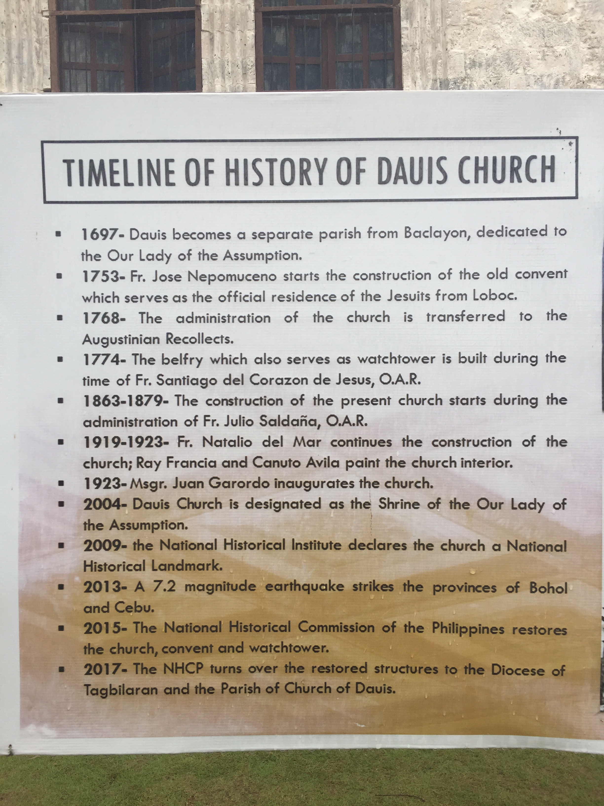 Reconstruction after a 7.2 magnitude earthquake in 2013 caused major damage to the church was completed in 2017.