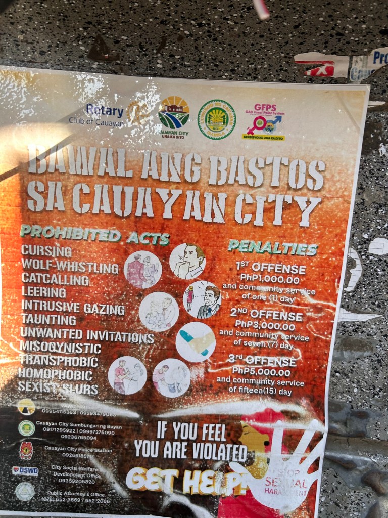 On my way back to the hotel, I saw this sign on a motorcycle, and then it all made sense to me: there’s a ban on rudeness in Cauayan City.